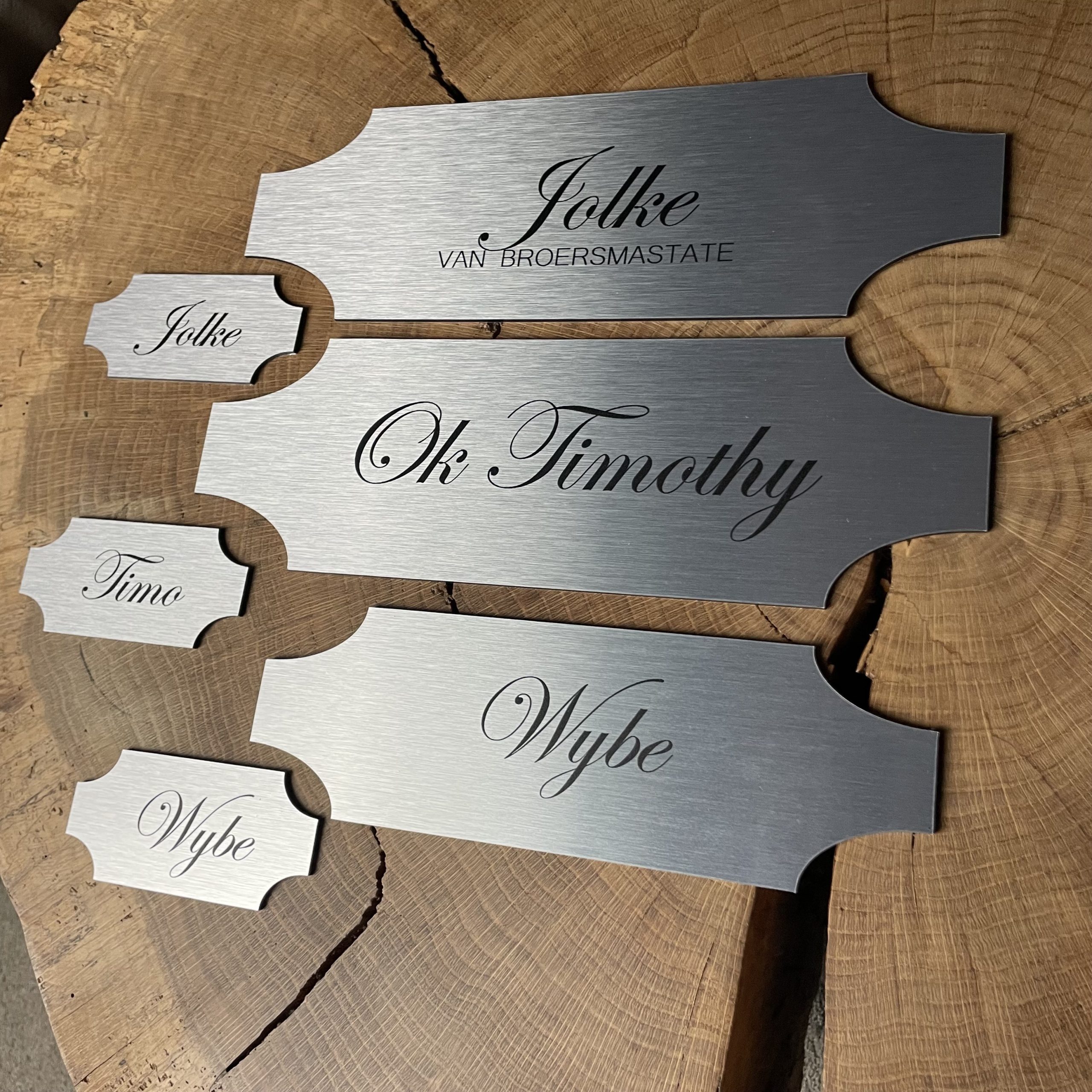 * Gewenste tekst vul je in bij het afrekenen bij ‘ factuurgegevens – bestelnotities’. Na het plaatsen van de bestelling neem ik persoonlijk contact op voor goedkeuring van het ontwerp. Daarna gaat het stalbord in productie.